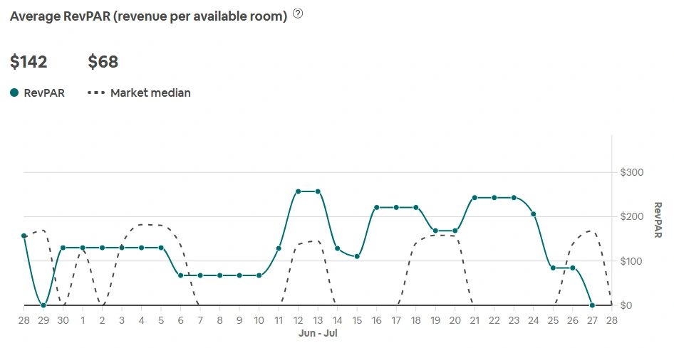 Here you see the impact of Rate Optimization and Yield Management. The power is that we doubled the occupancy of the hosted property AND drove the rates to 20% higher than the market average, very difficult to achieve. The market average is the dotted line and we are the solid green line.